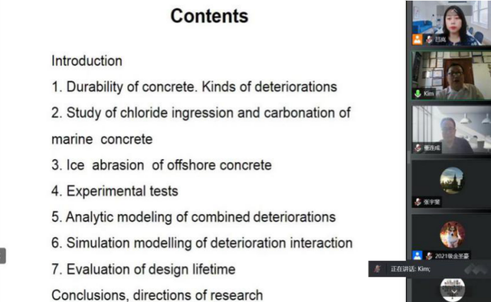 6月27日下午,beat365英国官网网站邀请了俄罗斯建筑与建筑科学研究院(RAACS)顾问,RAACS混凝土和钢筋混凝土破坏科学委员会委员,俄罗斯工程院顾问,国际生态、人类与自然保护科学研究院通讯委员,国际产学研用合作会议框架下中俄导师联合培养研究生项目俄方导师,俄罗斯远东联邦大学Kim Lev教授通过腾讯会议VOOV国际平台做了题为《极地海洋环境下混凝土耐久性分析》的学术报告,并与我校师生进行了广泛热烈的学术交流。