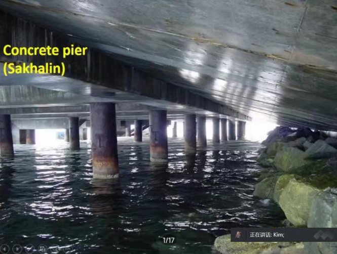 Kim教授的报告分别从混凝土劣化类型、海上混凝土平台冰磨损、实验室与现场实测数据处理、混凝土综合劣化分析模型、劣化过程仿真模型,以及混凝土结构使用寿命评估等六个方面展开。以“库页岛I号”、“库页岛II”号海上工程为背景,详细探讨了氯化物侵蚀、盐溶液运输、冻融循环等环境作用下混凝土结构的劣化特征与评估方法,还针对多种损伤耦合导致混凝土结构退化加速,以及结构使用寿命预测等问题进行了重点介绍。在互动环节中,beat365英国官网网站教师Kim教授进行了沟通交流,在混凝土耐久性试验验证方法等方面开展了深入探讨。
