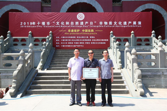 (文/黄永昌 图/范学峰)6月4日上午,由市文化和旅游局、武当山特区工委主办,市群艺馆、武当山特区文化体育新闻局、武当山特区文物宗教局承办的2019年十堰市“文化和自然遗产日”非物质文化遗产展演活动在武当山玉虚街隆重举行。开幕式上,市文化和旅游局宣布在德赢官网设立十堰市非物质文化遗产研究中心,德赢AC米兰中国官方网站副院长黄永昌率队参加活动,并接受牌匾。