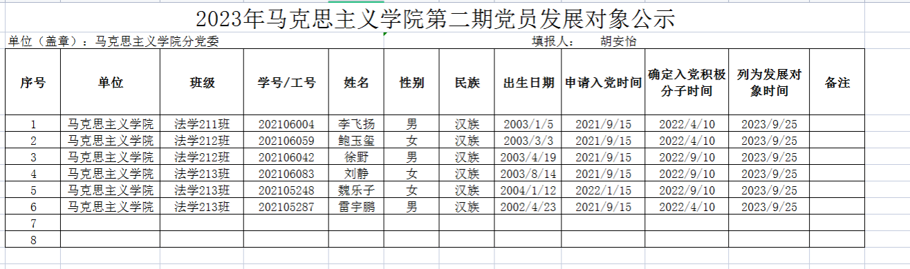 德赢AC米兰中国官方网站2023年第二期党员发展对象公示