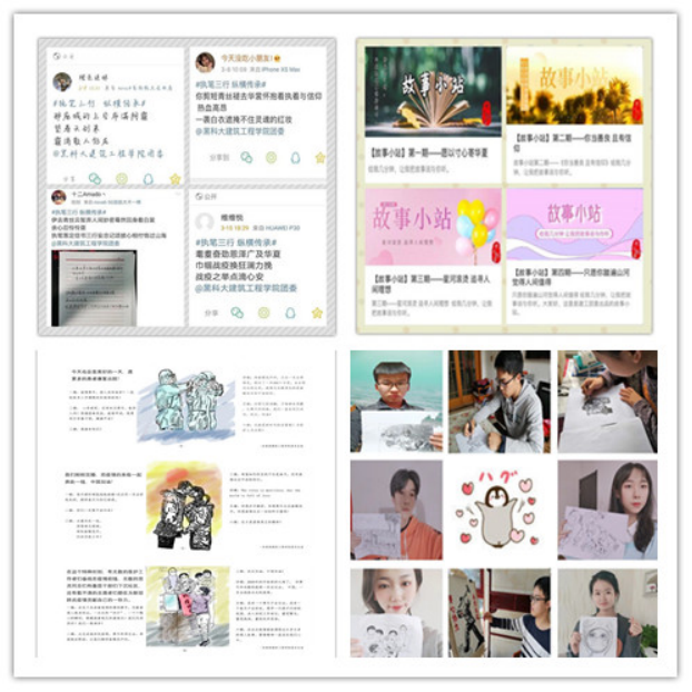 为了取得更好的网络育人效果,我院团委利用网络新媒体策划推出不同种类且主题鲜明的正能量网络文创活动。“执笔三行 纵横传承”原创微博话题活动,尽显青年之思、青年之想、青年之担当;官方微信公众号开设“故事小站”原创栏目,让鲜活的志愿故事以声音、文字、图像“三合一”的形式展现在大家面前;官方微信公众号开设“桃园小馆”线上海报原创栏目,充分发挥专业特色,首次推出“云”海报,打造砼人品牌活动。