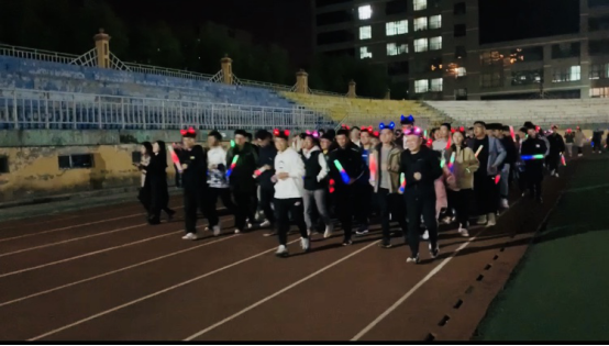 为深入开展“不忘初心、牢记使命”主题教育,丰富校园生活,促进健康良好生活习惯的养成,让学生“走下网络、走出宿舍、走向操场”。beat365英国官网网站于10月20日在田径场开展“阳光心理,健康成长”百人荧光夜跑主题活动。