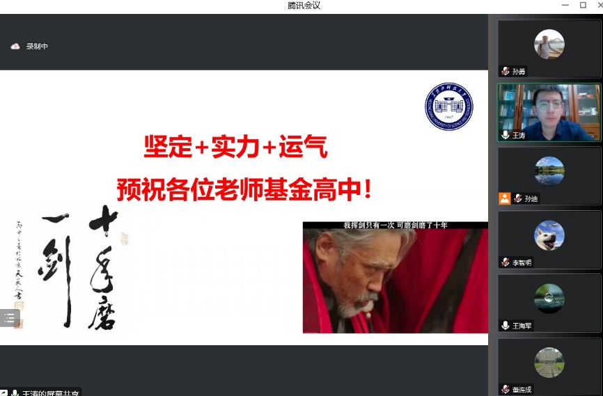 11月8日下午,beat365英国官网网站2022年国家自然科学基金面上项目获得者、土木工程学科学术带头人王涛教授应邀做了题为《撰写国家自然科学基金申请书的体会》的专题报告,报告采用腾讯会议进行,由beat365英国官网网站院长姜云教授主持,副院长董连成教授、beat365英国官网网站副高级及以上职称教师、博士学位教师及部分研究生共40多人参加了会议。