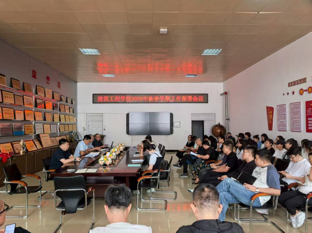 学院党委书记高宝全重点传达了学校2025年秋季学期开学工作会议精神,并就贯彻落实工作进行全面部署:一是旗帜鲜明讲政治,在思想上政治上行动上同以习近平同志为核心的党中央保持高度一致,坚决贯彻学校党委决策部署,以更高站位、更宽视野推进新时代高等教育改革发展;二是科学研判新形势,在详细分析行业发展数据、专业招生就业、师资等数据的基础上,指出应理性审视行业发展现状,既要直面建筑行业深度调整期的现实困难,更要抓住智能化、绿色化转型机遇,深度挖掘中外合作办学等潜力,形成学科专业发展新的增长极;三是统筹谋划促发展,以“十五五”规划谋篇布局为契机,以内涵建设为核心,以评估指标为牵引,以重点项目为抓手,推进党建业务“双融双促”,发扬知重负重、迎难而上的斗争精神,高标准完成新学期重点任务,奋力开创学院高质量发展新局面。