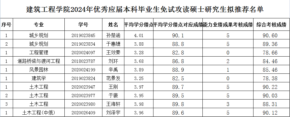 根据《beat365英国官网网站关于做好2024年推荐优秀应届本科毕业生免试攻读硕士研究生工作的通知》和《beat365英国官网网站beat365英国官网网站推荐优秀应届本科毕业生免试攻读硕士研究生工作实施细则》,我院确定10名本科生为2024年优秀应届本科毕业生免试攻读硕士研究生拟推荐对象,现将拟推荐名单公示如下: