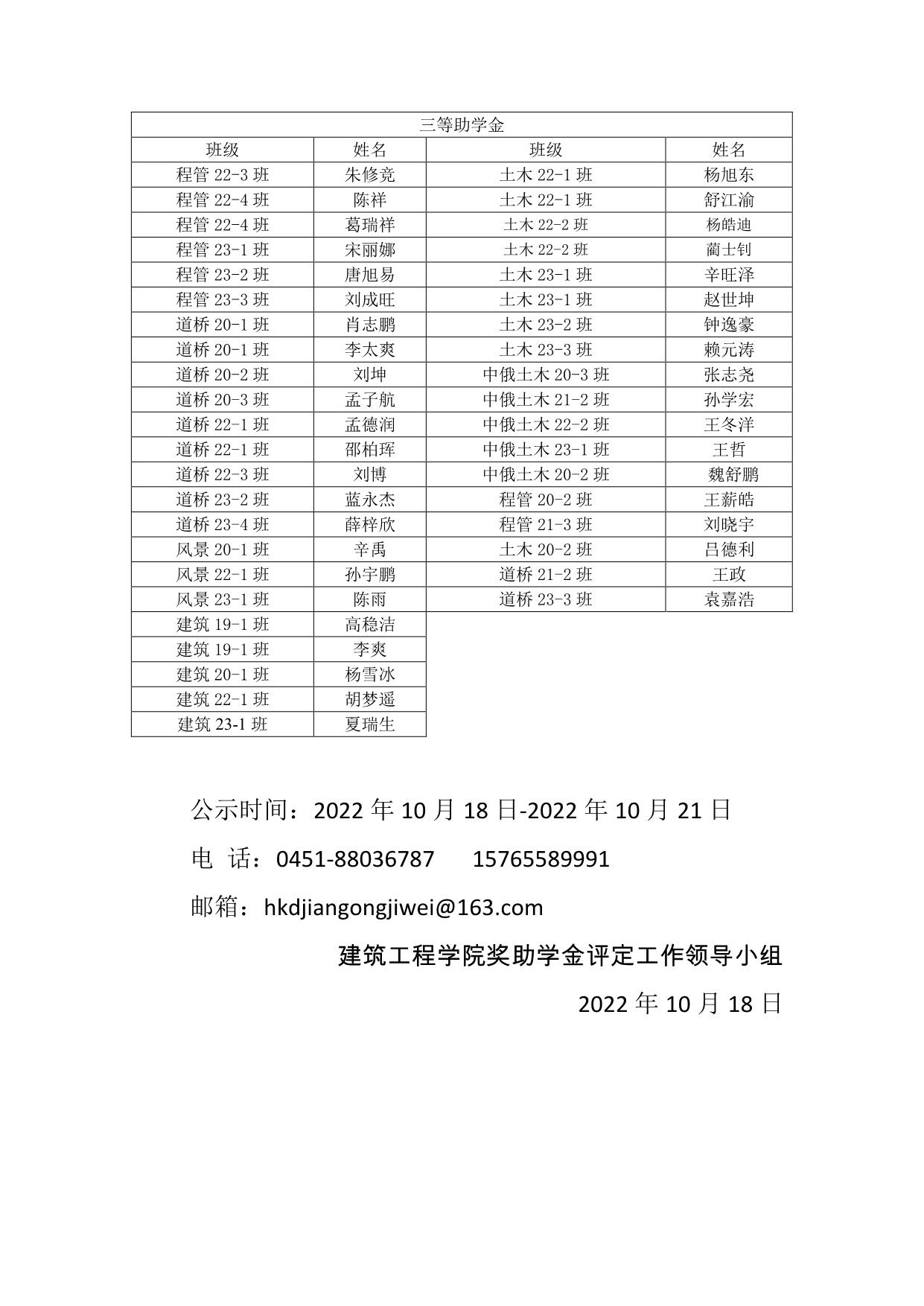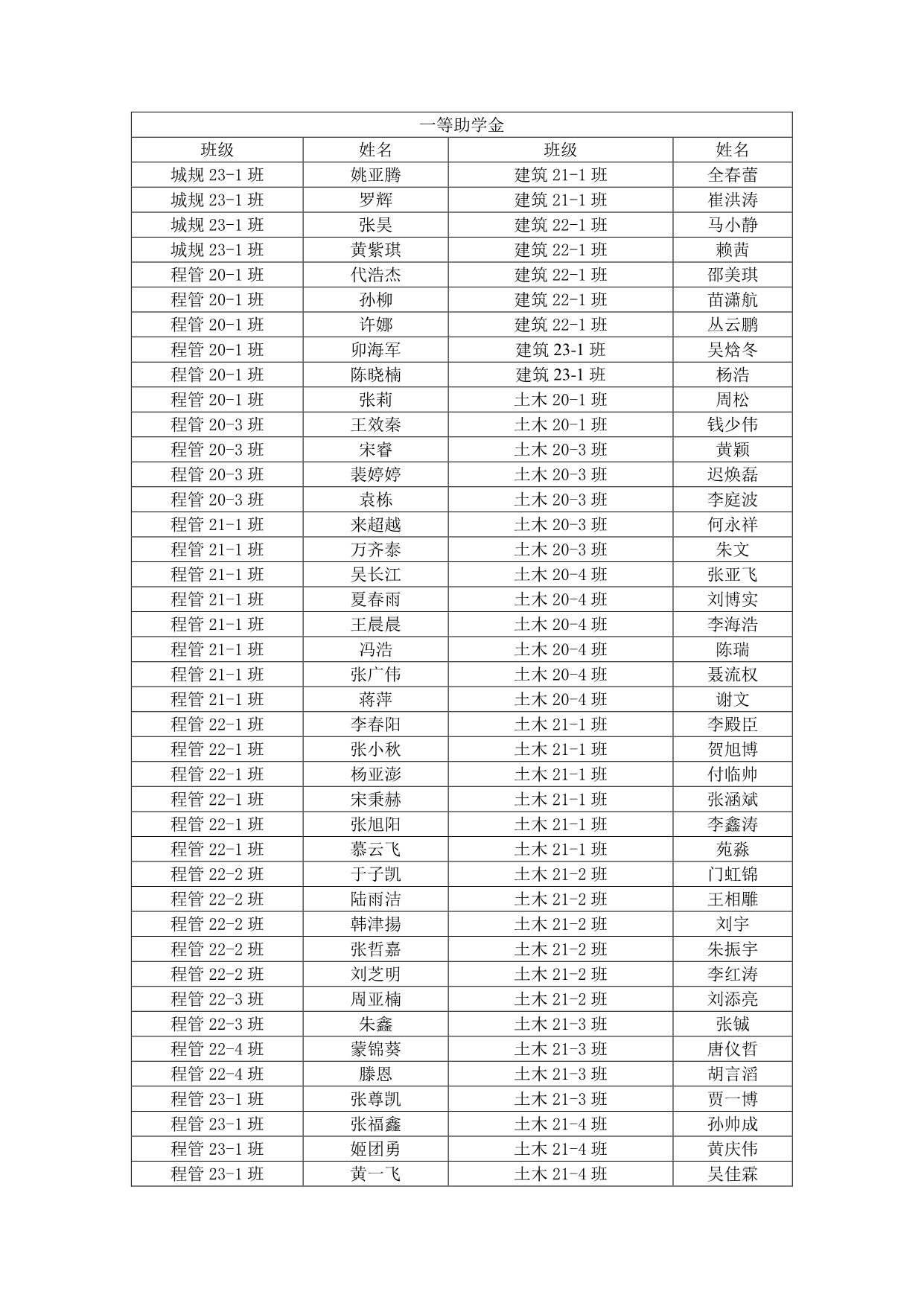建工学院 2023-2024 学年国家助学金拟推荐名单公示