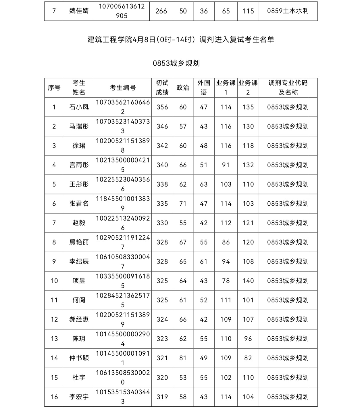 beat365英国官网网站2025年硕士研究生招生考试(土木工程专业)第一次调剂复试成绩
