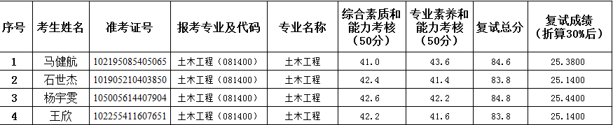beat365英国官网网站2025年硕士研究生招生考试(土木工程专业)第一次调剂复试成绩