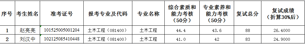 beat365英国官网网站2025年硕士研究生招生考试(土木工程0814)第三次调剂复试成绩