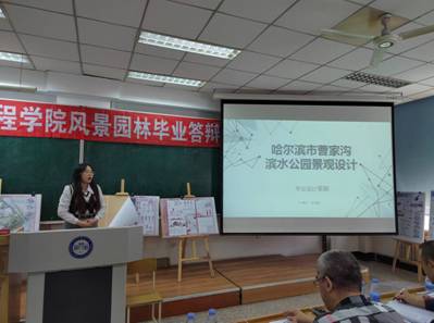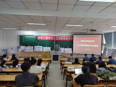本届学生毕业设计选题丰富,本届毕业设计选题100%真题设计,选题多样,与公园城市、乡村振兴、城市双修等热点主题紧密结合,成果内容具有一定创新性,涵盖风景园林热点问题,均采用真题真做模式,徐飞鸿和董雪两位同学分别以“哈尔滨市曹家沟滨水公园景观设计”和“齐齐哈尔市仙鹤宾馆片区景观规划设计”为选题进行了公开答辩,与会专家进行了精彩点评。通过公开答辩展现了我院风景园林专业一如既往的“产学研用”、“毕业设计+实习+就业”一体化实践教学成果以及专业师德师风建设成果,为专业发展积累了丰富的实践教学经验。全体专业教师和风景园林、城乡规划和建筑学部分同学参加了本次公开答辩,公开答辩后进行了小组答辩,经过一天的工作,顺利完成了毕业设计答辩工作。