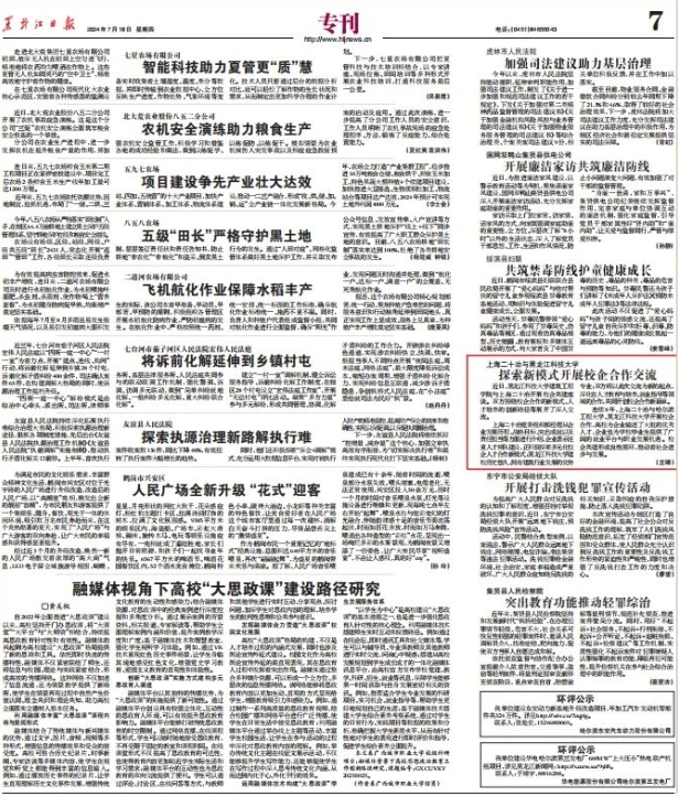 7月18日,黑龙江日报第7版专刊中,以《上海二十冶与beat365英国官网网站探索新模式开展校企合作交流》为题,报道我校开展校企合作交流活动。现将全文转发,以便学习交流。