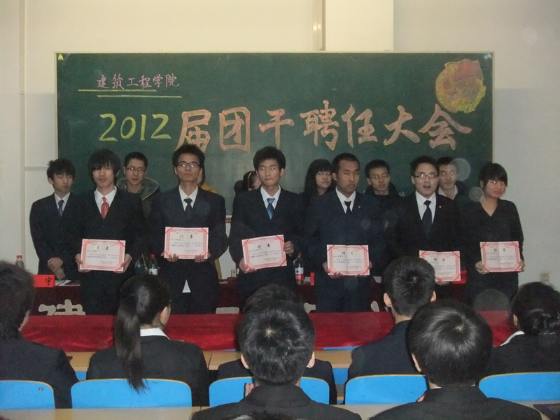 2012年3月21日中午,beat365英国官网网站分团委在主楼WN0101举行了2011-2012学年团干部聘任大会。院团委书记高汝男、兼职辅导员李雨亭以及全体新老团干部参加了本次聘任大会。受聘仪式在嘹亮的中国青年主义青年团团歌——《光荣啊!中国共青团》中隆重开始。兼职辅导员李雨亭宣读了《beat365英国官网网站分团委关于2011-2012学年团干部的聘任决定》;到会嘉宾向受聘的分团委、大学生科技协会、大学生英语口语协会的团干部颁发聘书;上一届团委副书记城乡08-1班薛兴海代表老干部做了发言;新受聘的团干部代表分团委副书记交通09-2班林俊全、大学生科技协会主席建筑学09-2班王田、大学生英语口语协会会长土木工程09-1班徐丽丽做了表态发言。 学院分团委书记高汝男做了总结讲话。她首先对新受聘的团干部表示祝贺。并号召全体团干部本着“团结、进取、笃实、创新”的工作作风,以“创特色、树品牌、上水平”为目标,转变观念、拓宽思路、不断创新、勇于开拓,为学校转型提升和更名大学贡献青春、智慧和力量。