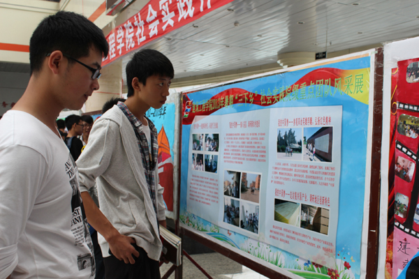 为贯彻落实党的十八大精神,践行“中国梦”深刻内涵,提炼和总结暑期大学生社会实践成果,9月9日—9月15日,beat365英国官网网站团委在主楼阳光大厅和科技大厦进行了为期一周的2013年暑假社会实践优秀作品展。本次展出紧紧围绕“实践激扬青春志,奋斗成就中国梦”的社会实践主题,在全院团员青年上交的3165份社会实践作业中精细挑选出了300余份优秀作品,设计了8个展示专栏,分别为暑期“三下乡”社会实践校级重点团队风采展专栏、暑期“三下乡”社会实践院级重点团队风采展专栏、“放飞中国梦,政策惠民生”调研报告专栏、“书海扬帆”读书笔记专栏、我的中国梦,爱家乡——建筑文化摄影展专栏、“实习中促进成长,岗位上树立理想”实习报告专栏、“我为学校做代言,走访建筑类用人单位”专栏、社会实践图片及团队微博展示专栏。在讲解员生动的讲解下,一份份数据详实的调研报告、荡气回肠的读书笔记、颇具艺术美感的建筑照片、形象直观的实践照片、浓缩智慧与汗水的实习报告等这些实践成果展示在全校师生面前,不时引人驻足观看、交流讨论。2013年暑期社会实践重点部分我院共组建校级重点团队1支、院级重点团队4支。公共部分分年级、分层次、分类别,特色鲜明地设计了6个方面的实践内容,累计参与人数达1592人,涉及21个省、4个直辖市、2个自治区的1826个市、县、乡、村,参与率达99.87%,优秀率达8.9%。