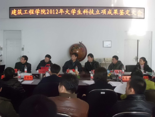 12月4日上午,beat365英国官网网站2012年大学生科技立项成果鉴定大会在建工学院会议室召开,对三项非常优秀的大学生科研成果以公开答辩的形式进行了鉴定,然后按照专业对其它按期结题的科研成果进行了分组鉴定。科技处副处长李桂春、校团委实践部部长张晓光出席了本次鉴定会。科研成果鉴定委员会主任由建工学院院长韩雪教授担任,副院长姜云教授和薛志成副教授担任副主任,各专业学科部主任担任专家成员。会议由建工学院党委副书记邬承斌同志主持。