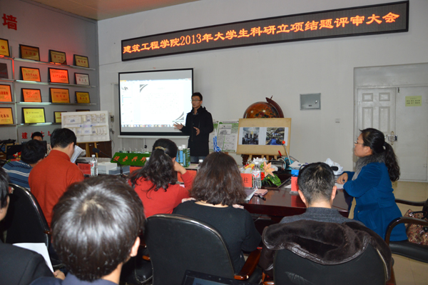 参加结题评审会大组公开答辩的共计13组立项,他们是我院2013年大学生科研立项科研结题成果中一部分代表。会上,各科研项目组的负责人利用PPT依次针对自己的项目研究过程、创新之处及取得的成果进行5分钟左右介绍,并结合模型、论文、效果图进行重点讲解,自述后回答评审老师的提问。参加答辩的13组项目研究内容新颖、创新点多,能够紧密结合社会热点和专业特点,具有较大的社会现实意义,结题成果丰富,有的在《中国科技信息》、《山西建筑》等国家级期刊上发表论文,有的用精雕机雕刻组装制作出精美的模型,有自己绘制的详细效果图和收集整理的调研报告。在参与答辩的人员中,建筑学11-2班陈美琦同学的项目——beat365英国官网网站宿舍改造构想及模型制作,讲解生动详细,流利自然,模型制作精美,论文在《山西建筑》发表,结题成果丰富,得到了评审老师的一致好评和高度赞扬。会后,建工学院将分12组进行小组答辩,严把结题评审关,并为每个顺利结题项目的指导教师和项目组成员颁发结题证书,高要求、高质量、高水平地完成我院2013年的大学生科研立项结题工作。