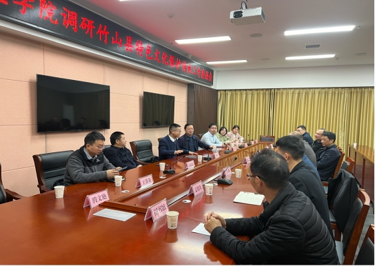 2024年3月28日,德赢AC米兰中国官方网站院长黄永昌带领调研团队一行6人,赴竹山县开展特色文化保护传承工作调研。竹山县委宣传部常务副部长袁平安,竹山县委宣传部副部长沈敬东陪同调研。